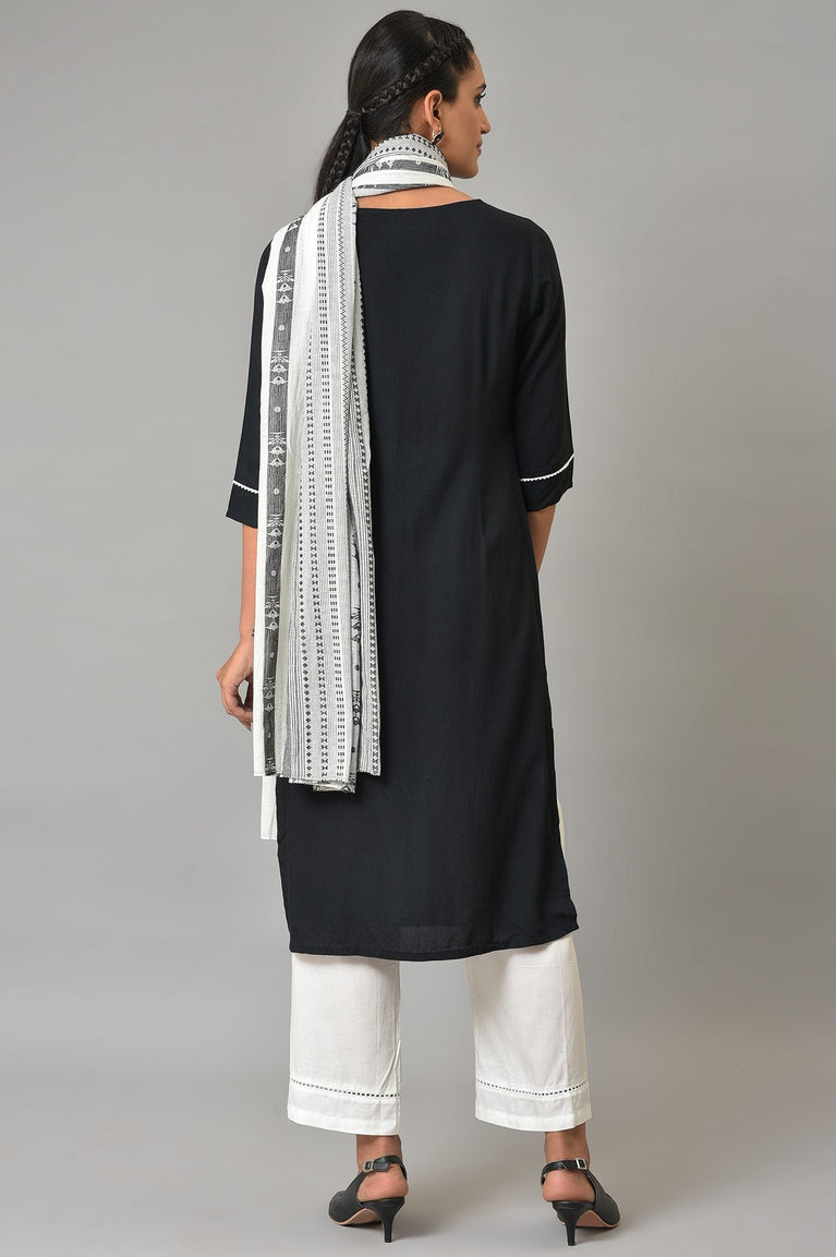 Weave a all new style story this winter with this black and white round neck full sleeve kurta.