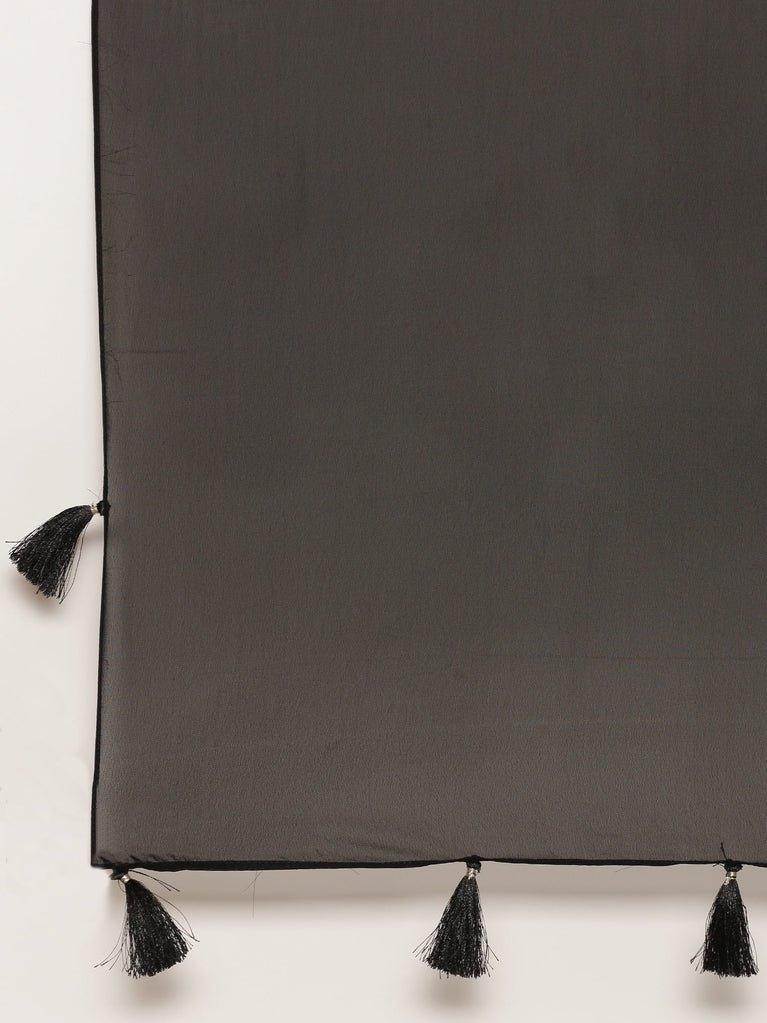 Black Geogrettte Palazoo Set With Embroiderey