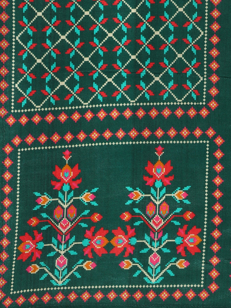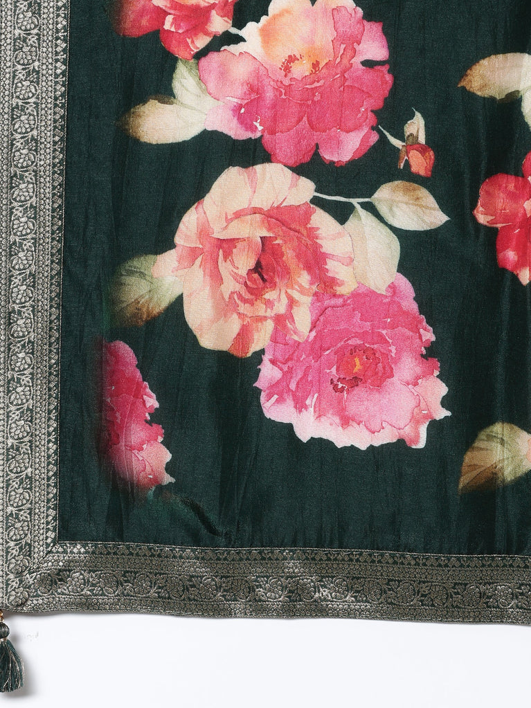 Bottle Green Glitter Printed Kurta With Embroidered Yoke