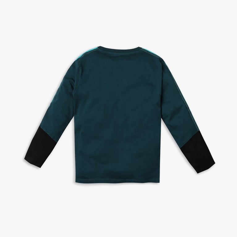 This t-shirt has a crew neck and full sleeve. Made from cotton, your kid's feel comfortable wearing a product.