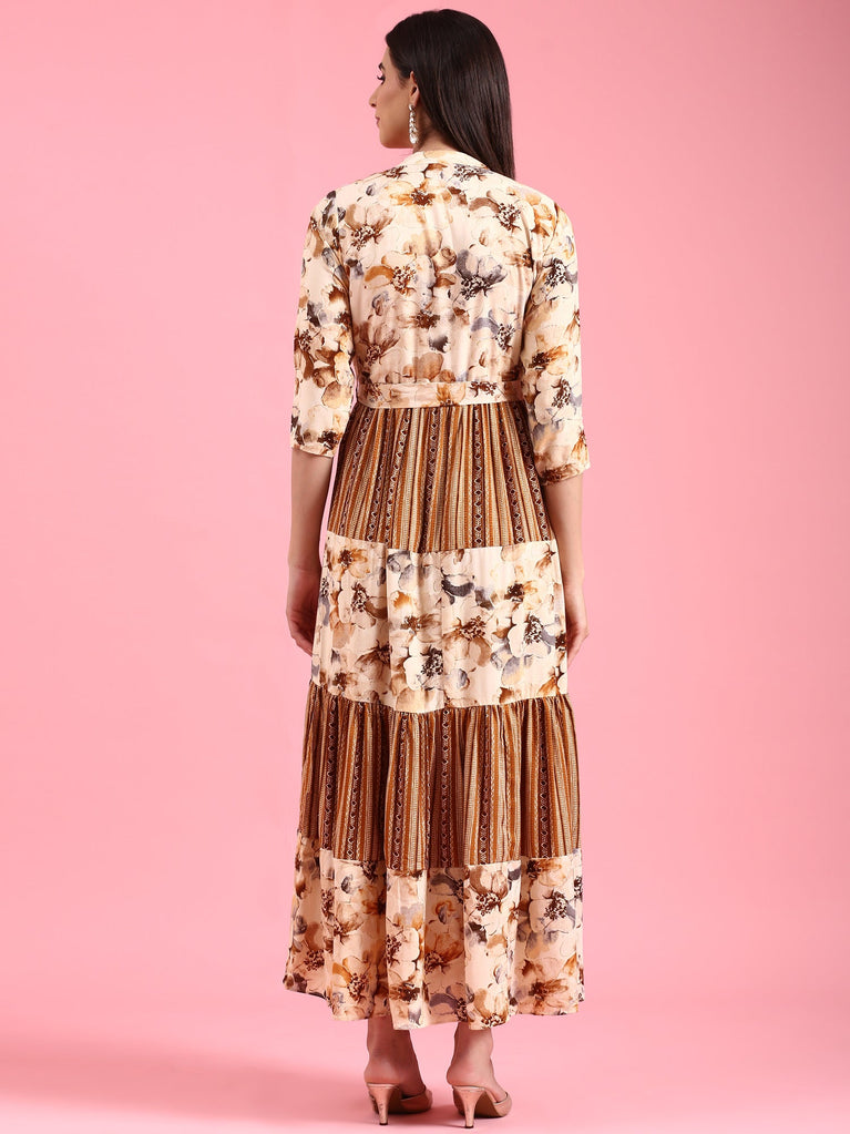 Brown Rayon One Piece Long Gown