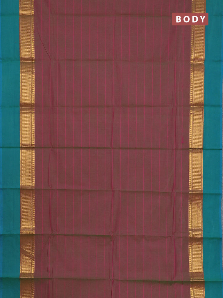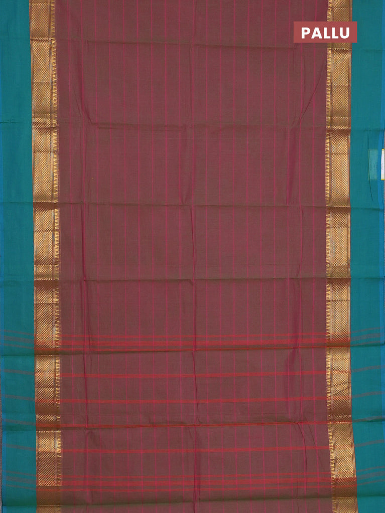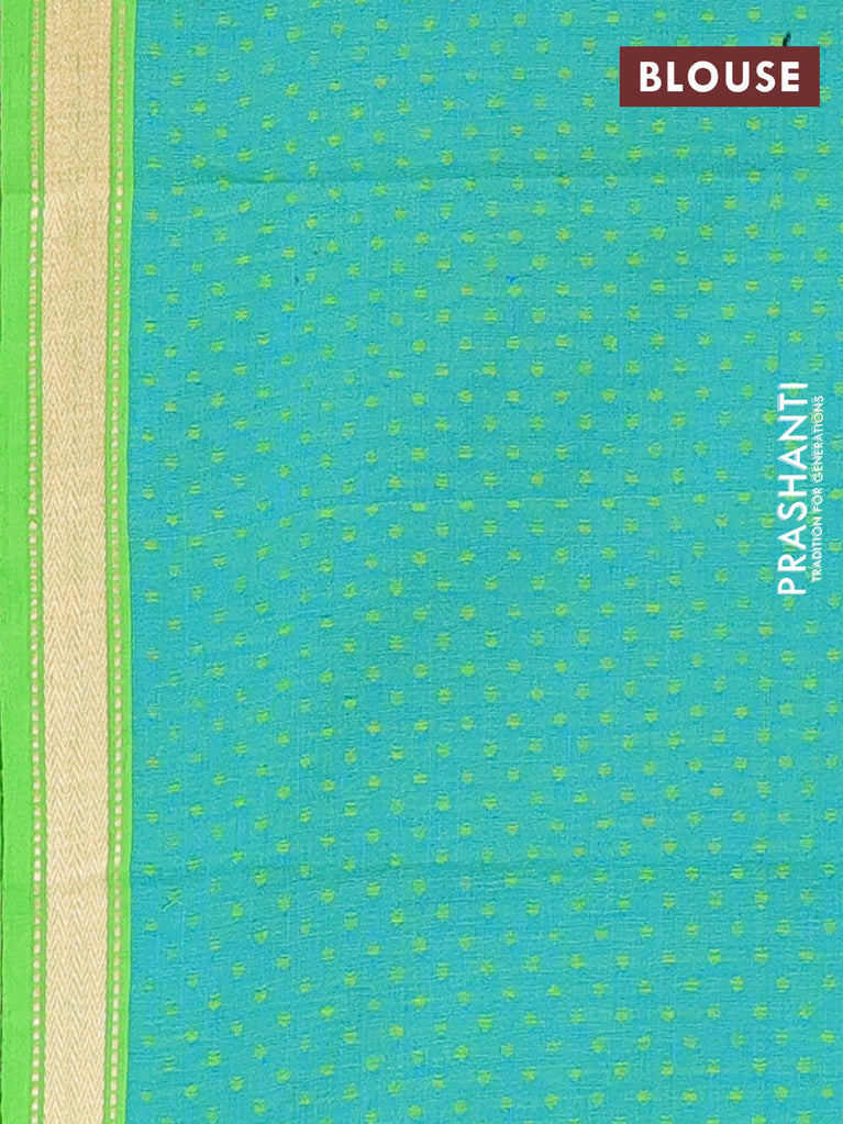 Chettinad cotton saree green and teal blue with allover thread woven stripes pattern and zari woven border