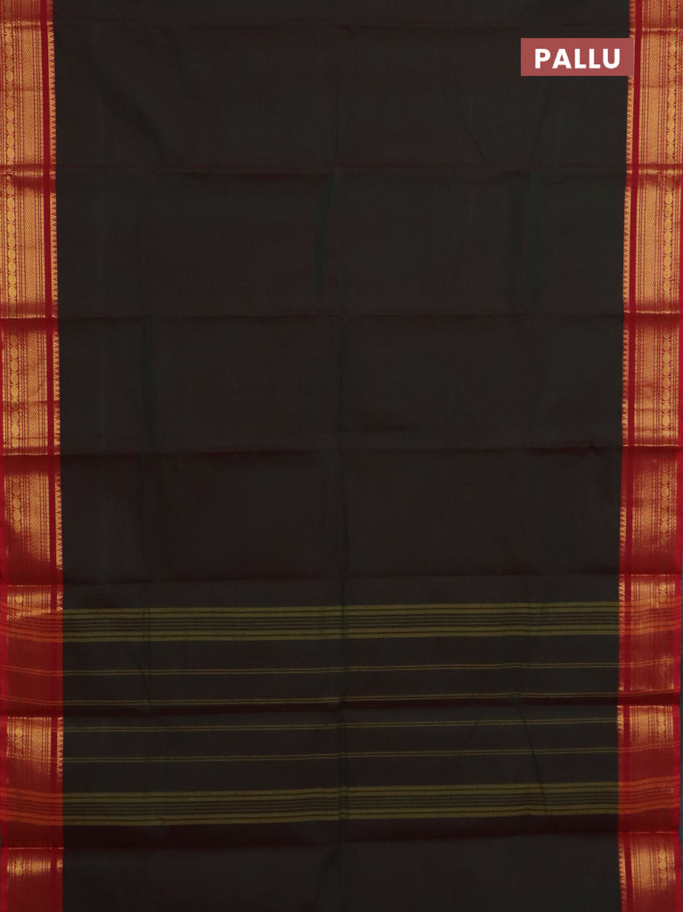 Chettinad cotton saree dual shade of green and red with plain body and zari woven border