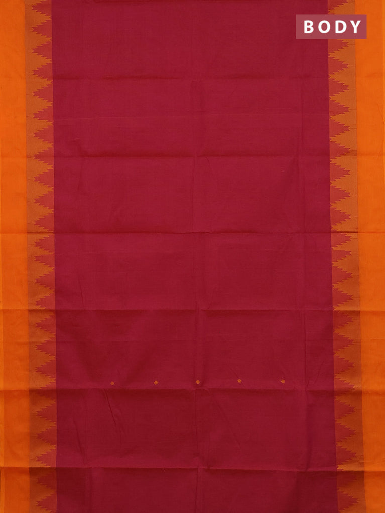 Chettinad cotton saree dual shade of magenta pink and orange with thread woven buttas and temple design thread woven simple border