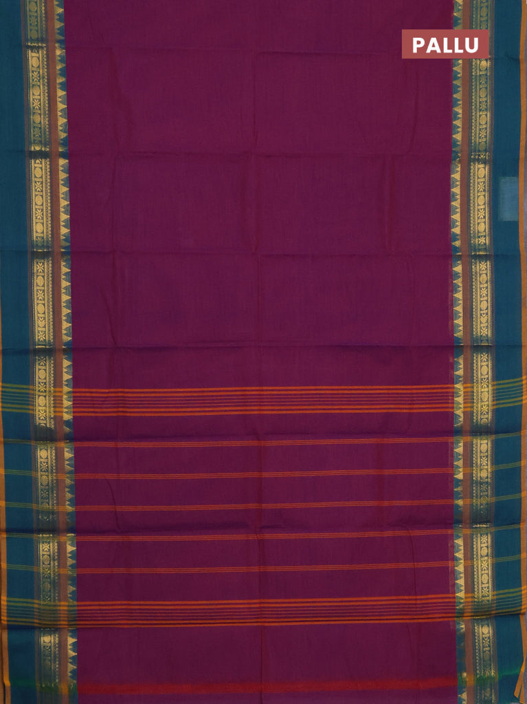 Chettinad cotton saree purple and peacock green with thread woven buttas and temple disign zari woven border