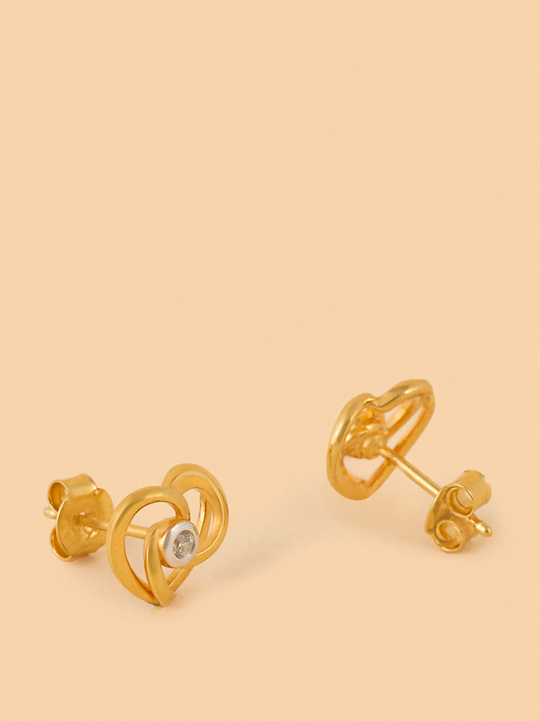 These chic studs showcase a graceful hollow ribbon heart crafted from gold vermeil by Westside X Pome. At the center, a sparkling lab-grown diamond adds an elegant touch, elevating the design to a timeless statement of sophistication. Perfect for adding a refined charm to any look.