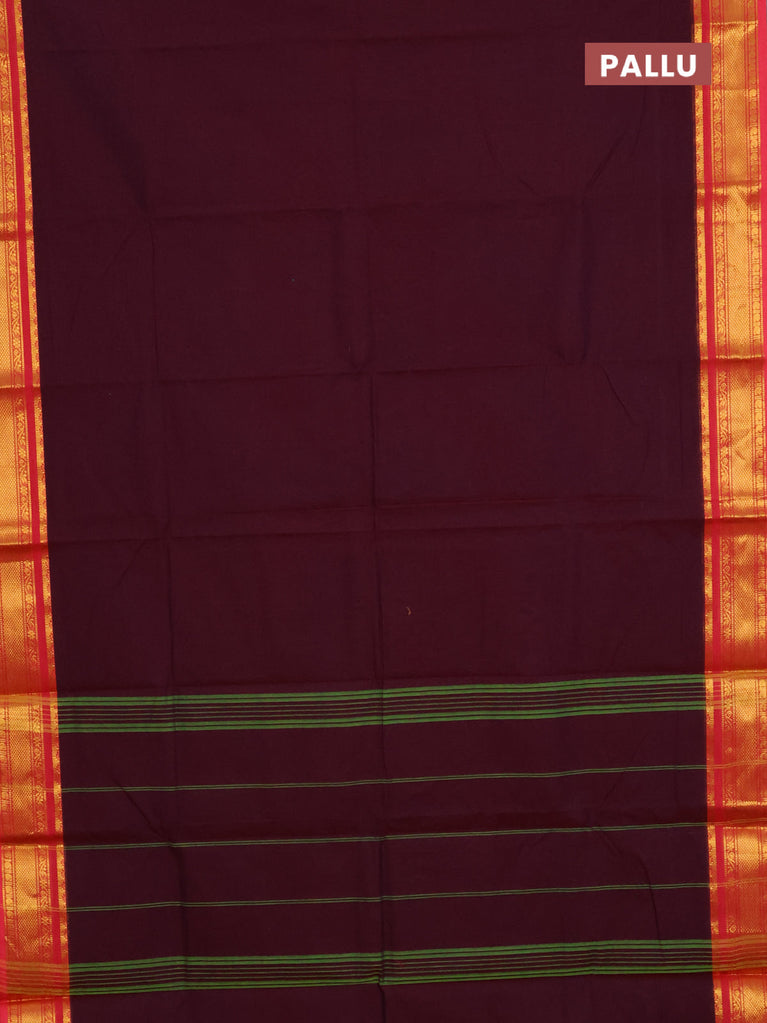 Chettinad cotton saree wine shade and peach pink with plain body and zari woven border