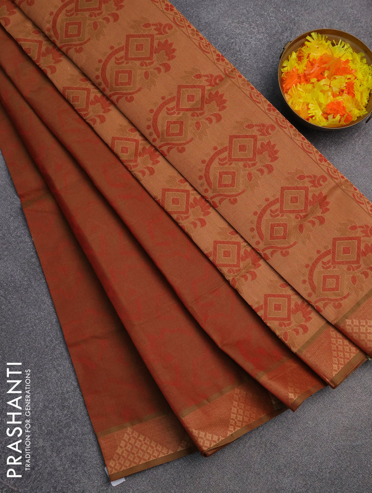 Coimbatore cotton saree dual shade of brown with allover self emboss and thread woven border
