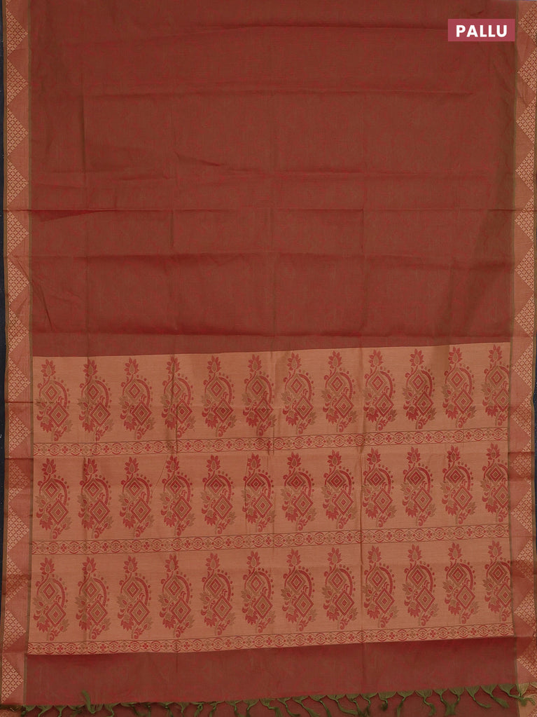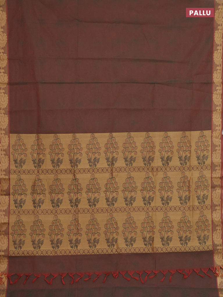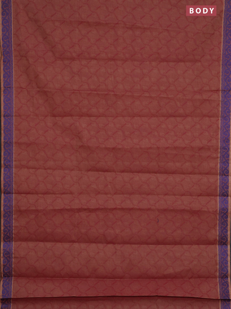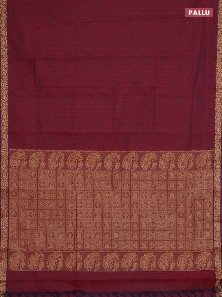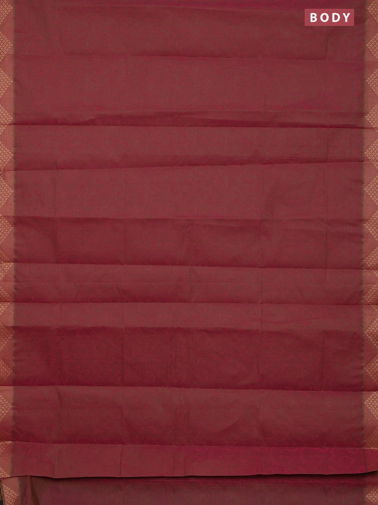 Coimbatore cotton saree dual shade of greenish maroon with allover self emboss and thread woven border