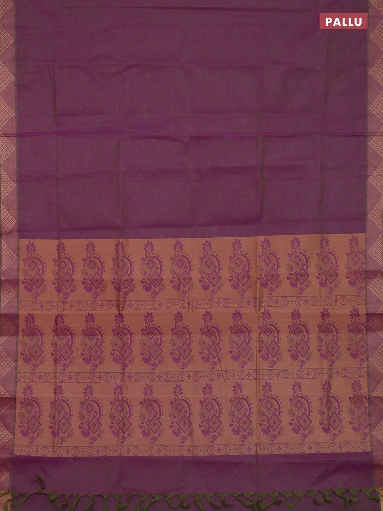 Coimbatore cotton saree dual shade of greenish violet with allover self emboss and thread woven border