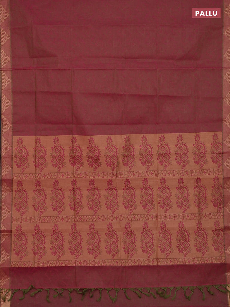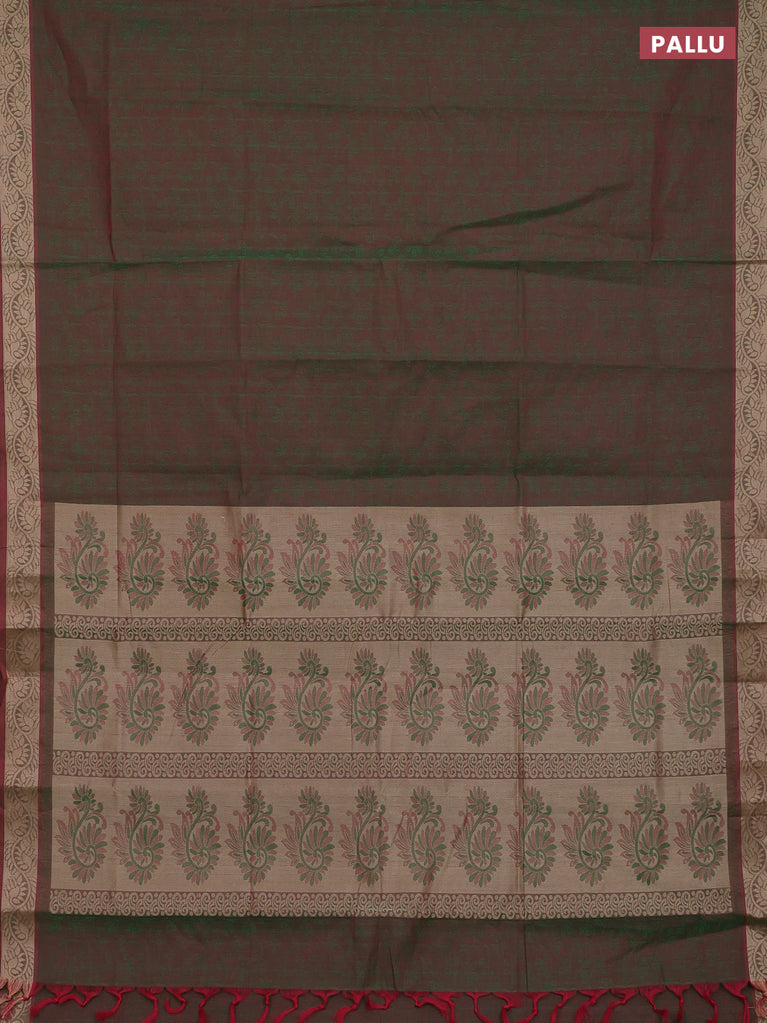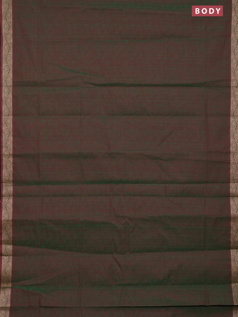 Coimbatore cotton saree dual shade of maroonish green with allover self emboss and thread woven border