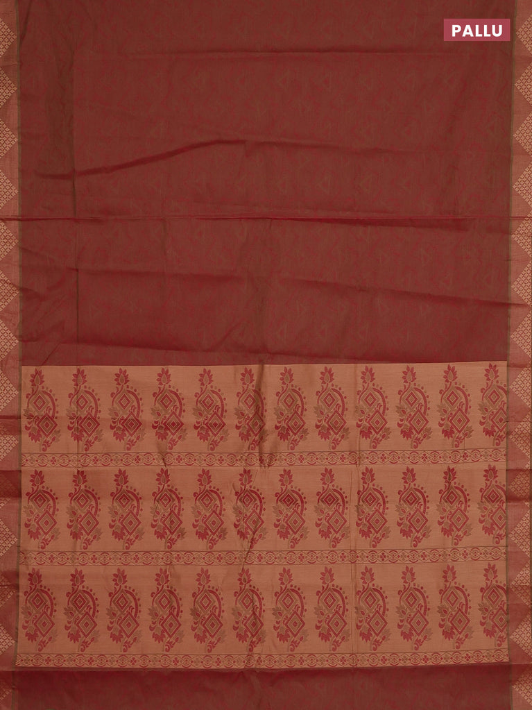 Coimbatore cotton saree dual shade of maroon and sandal with allover self emboss and thread woven border