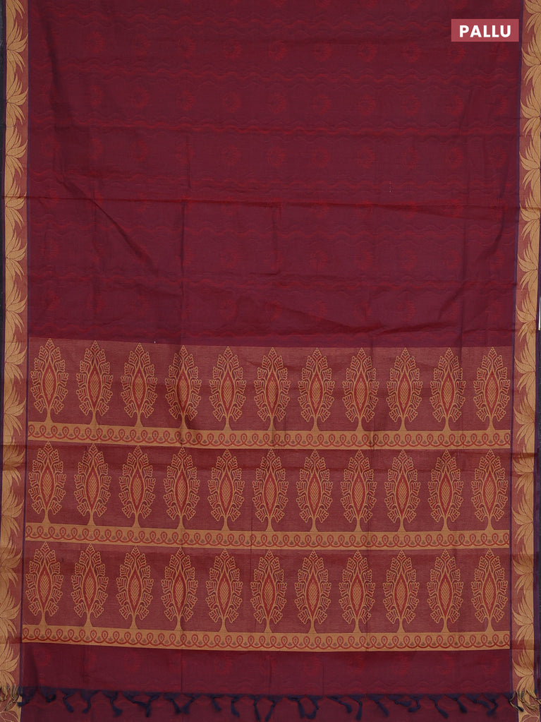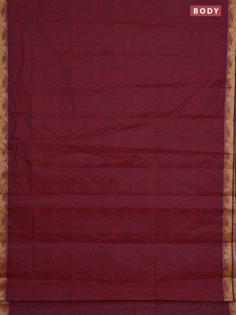 Coimbatore cotton saree dual shade of maroon with allover self emboss and thread woven border