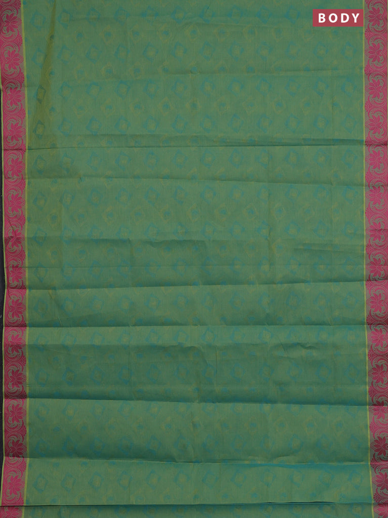 Coimbatore cotton saree dual shade of greenish blue and pink with allover self emboss and thread woven border