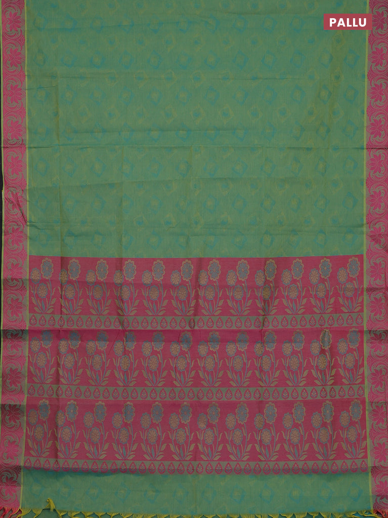 Coimbatore cotton saree dual shade of green and pink with allover self emboss and thread woven border