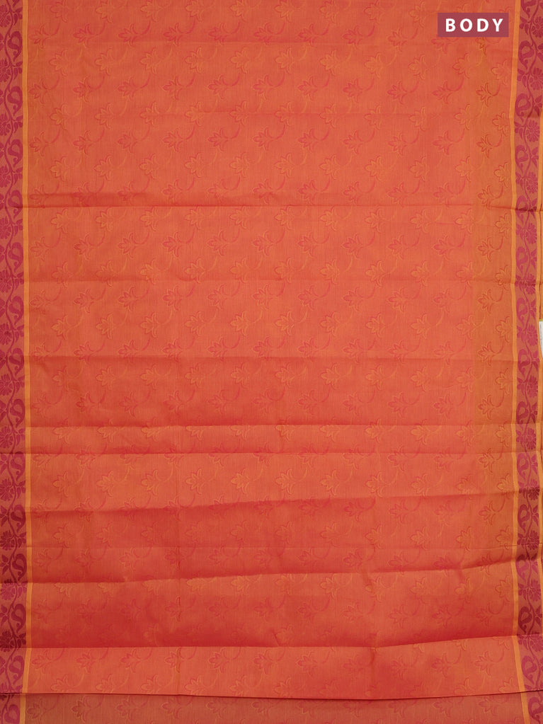 Coimbatore cotton saree dual shade of orange and pink with allover self emboss and thread woven border