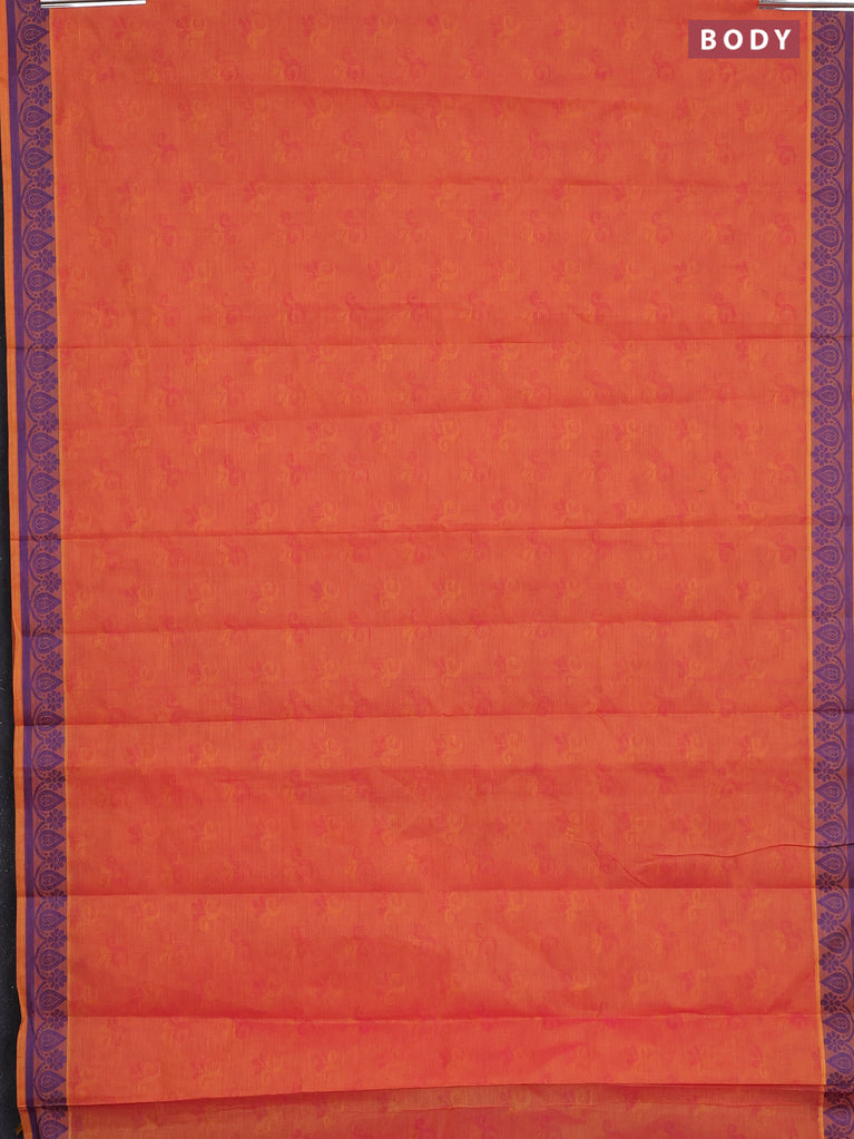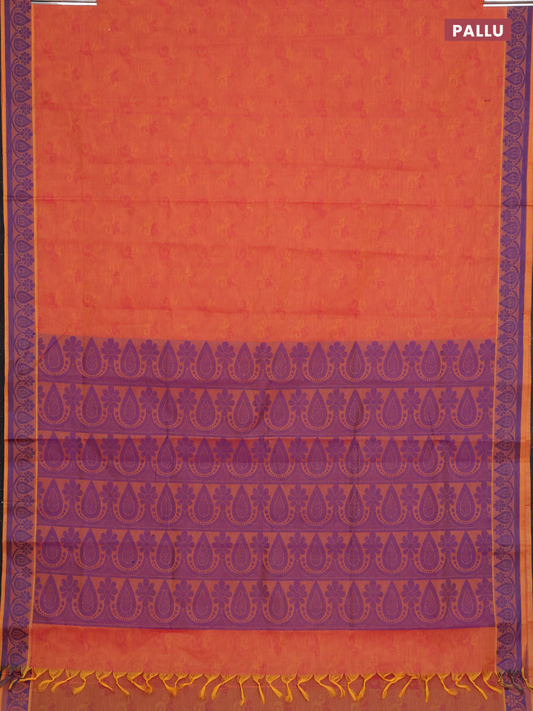 Coimbatore cotton saree dual shade of orange and blue with allover self emboss and thread woven border