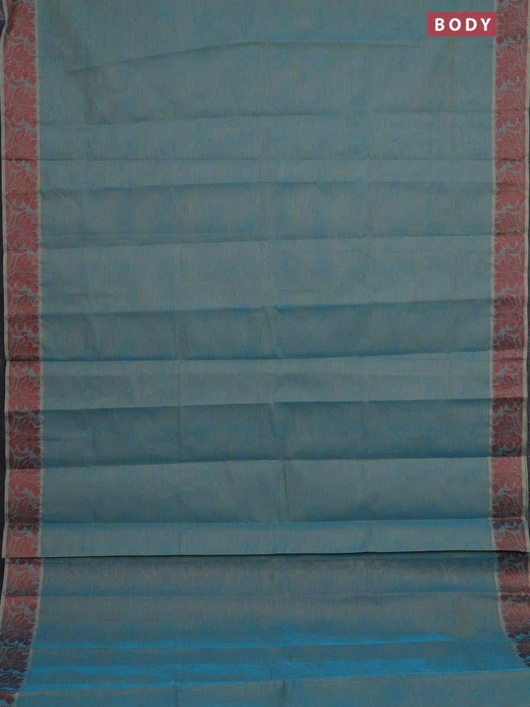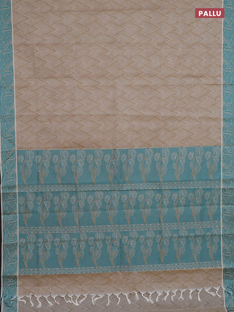 Coimbatore cotton saree dark sandal and teal green with allover self emboss and thread woven border