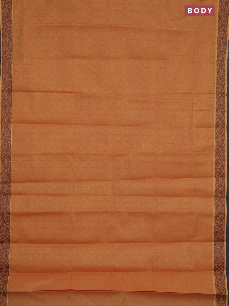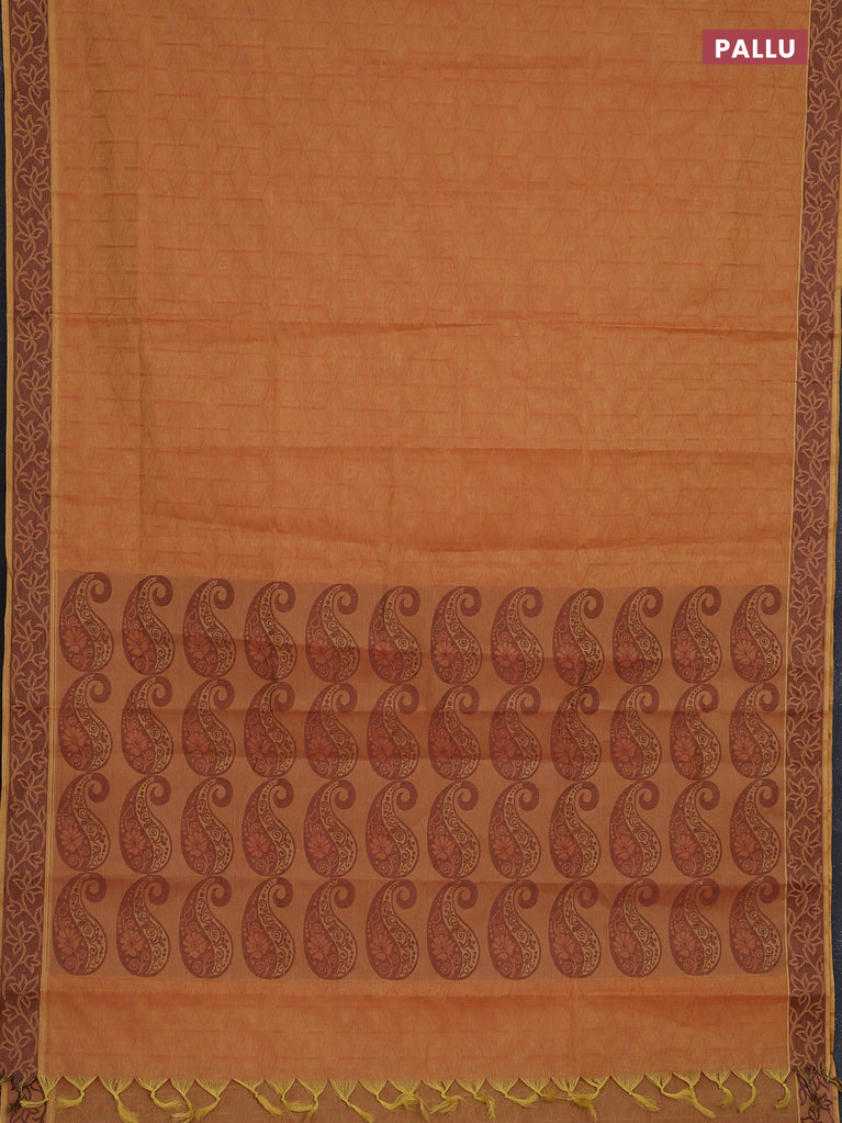 Coimbatore cotton saree dual shade of dark mustard with allover self emboss and thread woven border