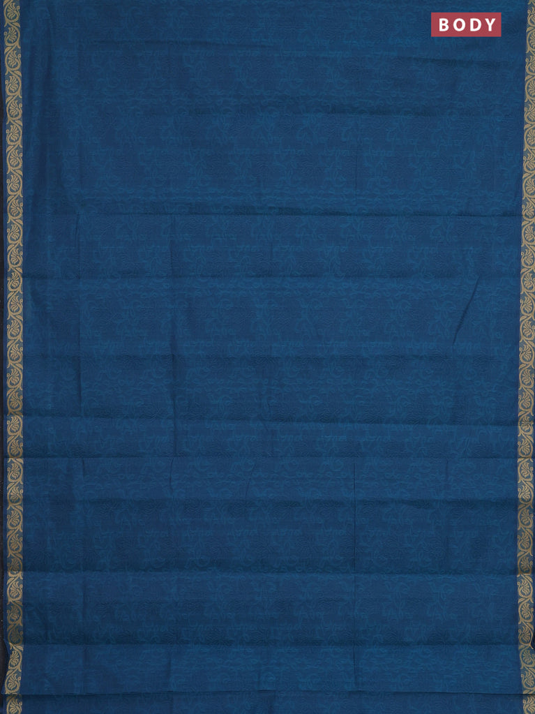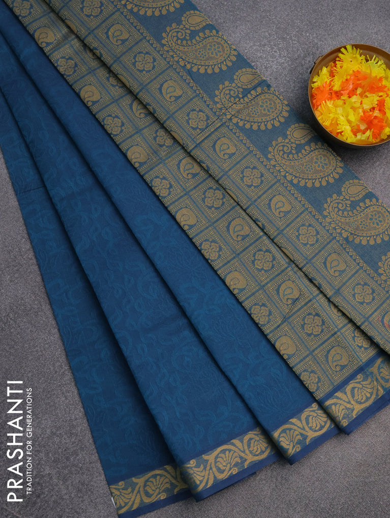 Coimbatore cotton saree cs blue and sandal with allover self emboss and thread woven border