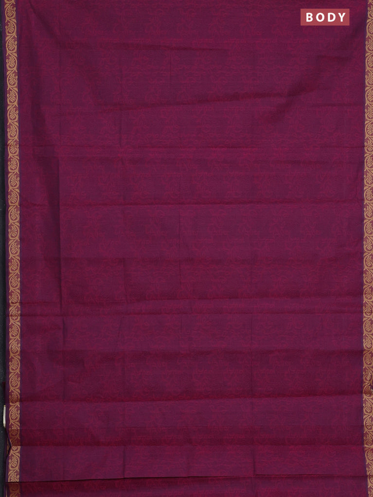 Coimbatore cotton saree dark magenta pink with allover self emboss and thread woven border