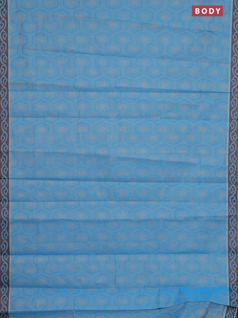 Coimbatore cotton saree cs blue and brown with allover self emboss and thread woven border