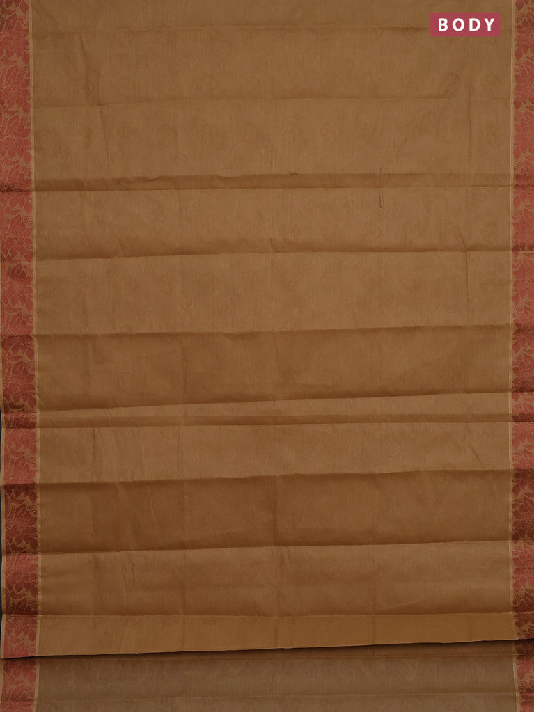 Coimbatore cotton saree chikku shade and brown with allover self emboss and thread woven border