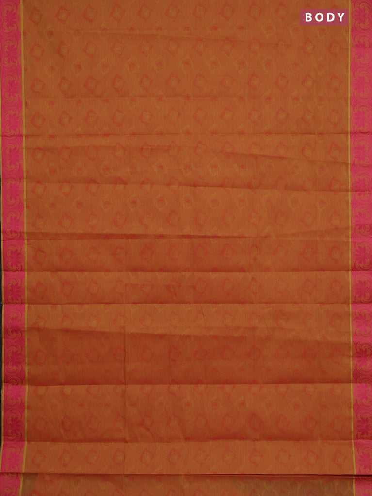 Coimbatore cotton saree dual shade of dark mustard and pink with allover self emboss and thread woven border