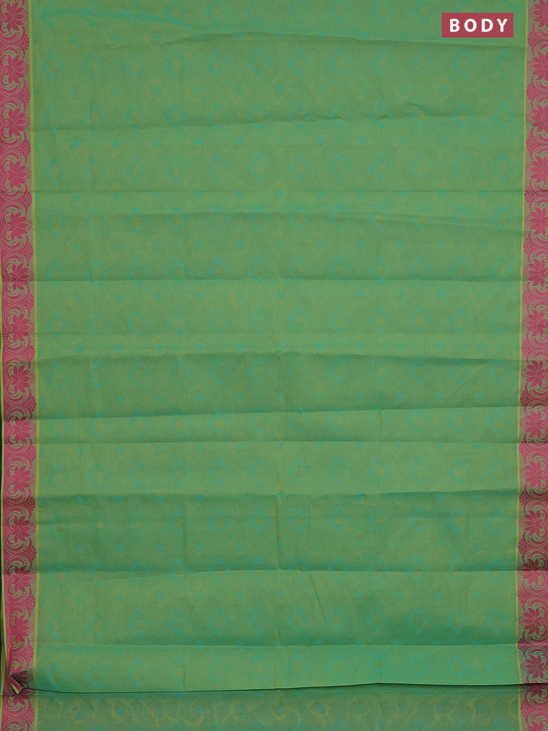 Coimbatore cotton saree dual shade of green and pink with allover self emboss and thread woven border