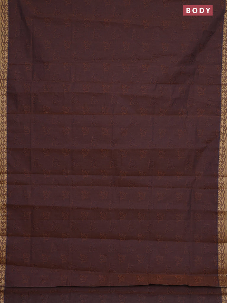 Coimbatore cotton saree dual shade of brown with allover self emboss and thread woven border