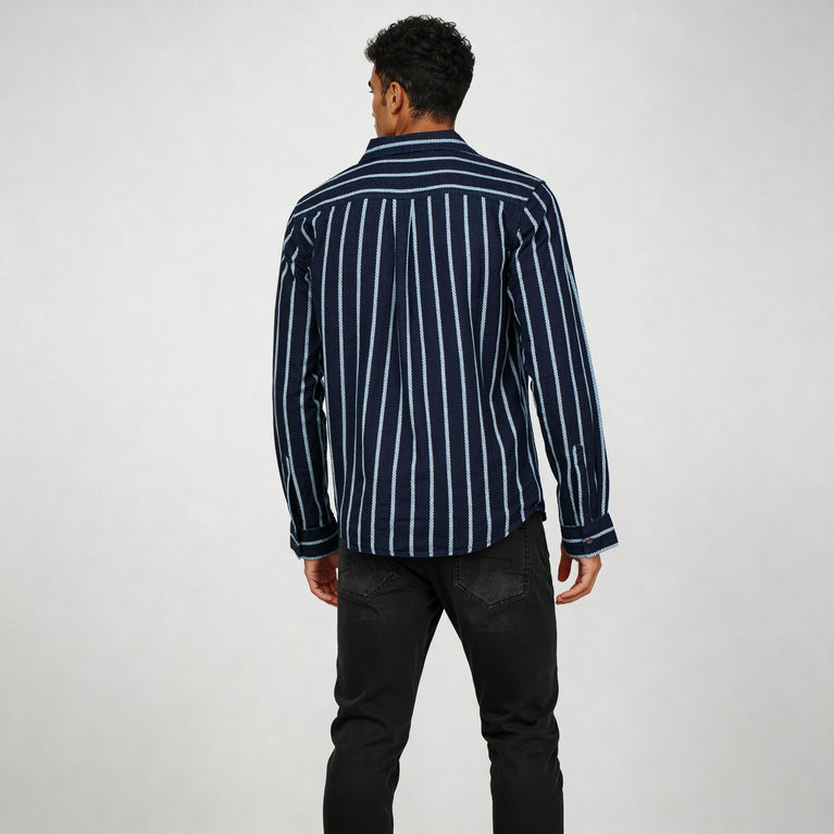 Introducing the Cotton Striped Cruiser Shirt, a stylish yet versatile choice for men. Crafted from high-quality woven cotton, this shirt combines comfort with a classic striped pattern, making it perfect for both casual and semi-formal occasions.