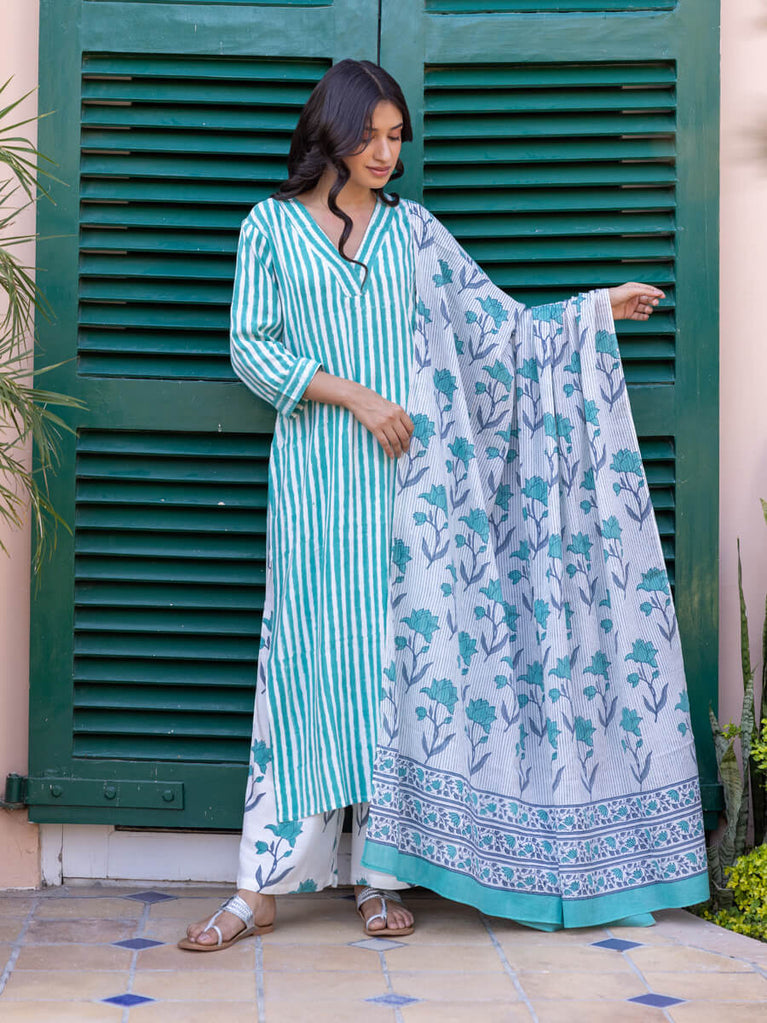 Dancing Lotus Hand Block Printed Cotton Dupatta