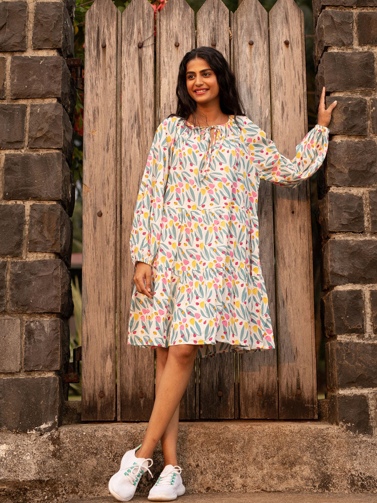 Inspired by the first ray of dawn, Dancing Dhoop makes you dance with joy. This Purple and magenta mul cotton saree brings two bright moods in one soft drape.Woven zari lines grace the pallu, while orange accents add a playful charm to the saree. Pink and purple tassels at the edges bring a touch of cheer. This piece is perfect for breezy brunches and carefree evenings.