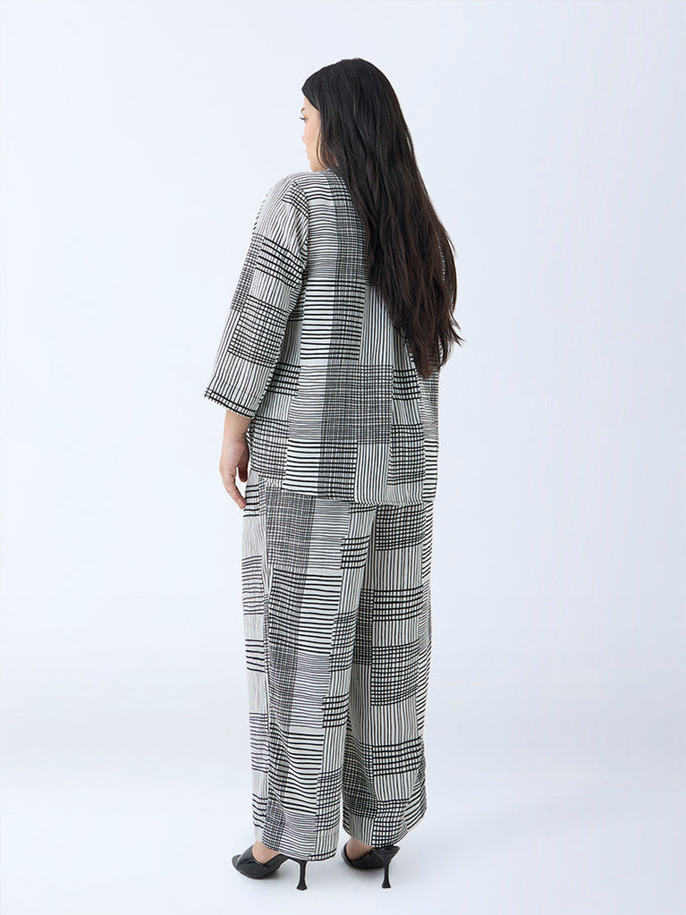 These black trousers from Gia are tailored from a breathable fabric to keep you comfortable through the day. Detailed with modified check prints, they feature an elasticated waistband for a flexible fit and are finished with side pockets for added functionality.
