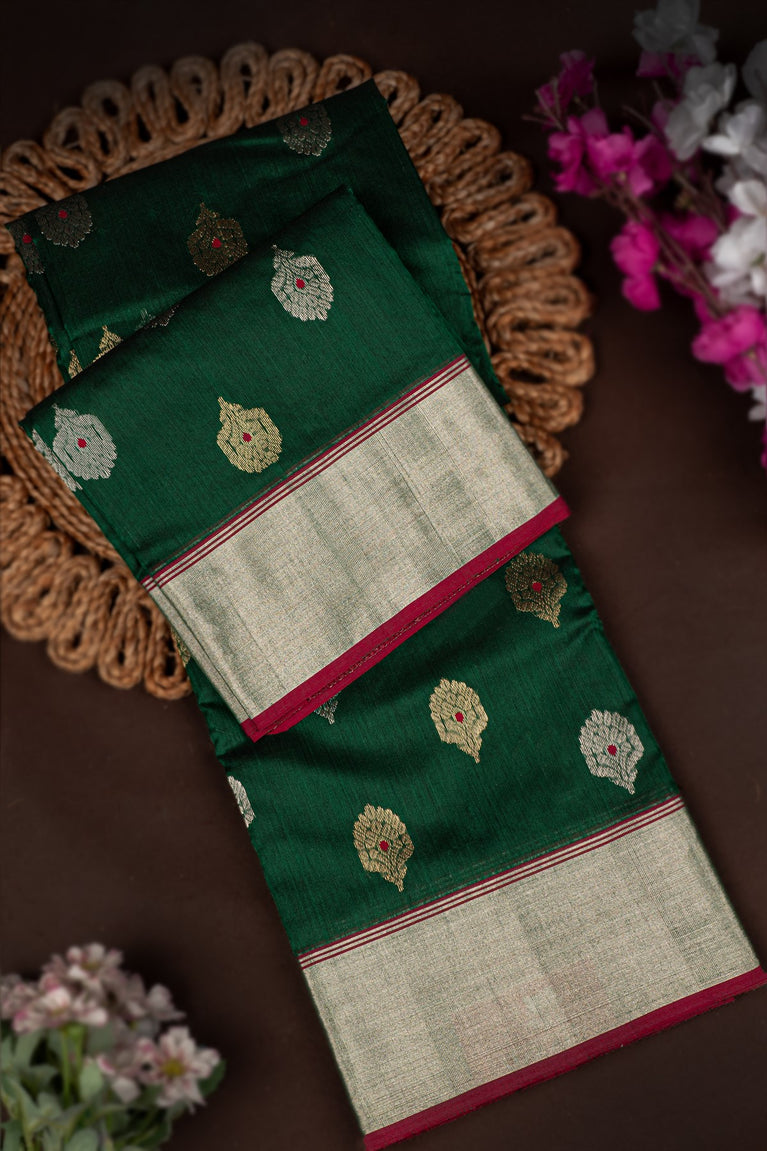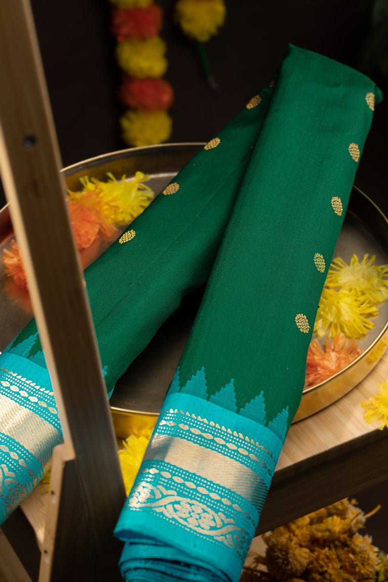 Mandir Dark Green & Dark Green Banarasi Buttis Saree