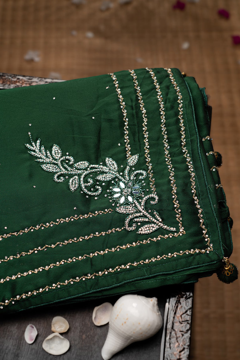Mandir Dark Green & Dark Green Fancy Work Saree