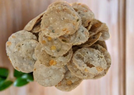 Godavari Vantillu is a confectionery and provider of sweets and savories in India, and we offer you an authentic Hot snack from Andhra called Pappu Chekodi. Followed by our traditional cooking methods, this Chegodi imbued with dal is the taste of antiquity.