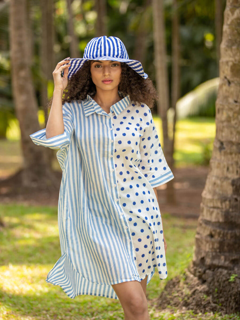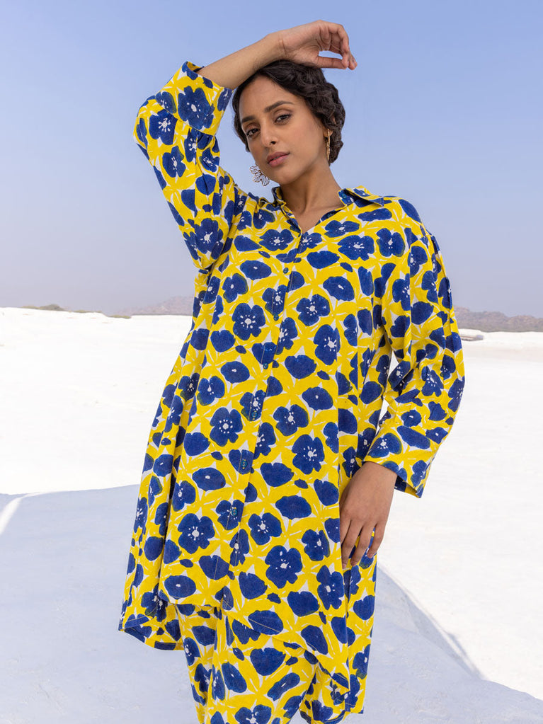 Set of 2 - Breeze Dabu Indigo Shirt Dress and Pants