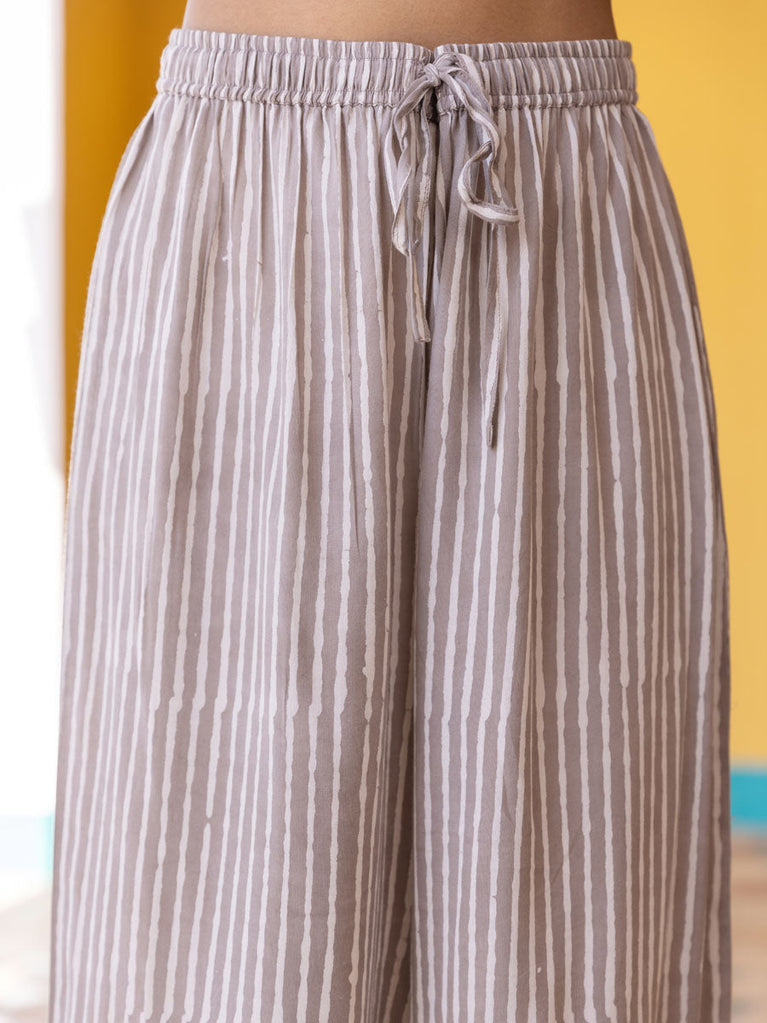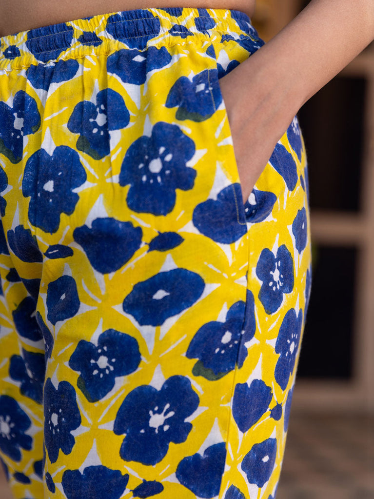 Set of 2 - Blue Lotus Block Printed Kurta and Lantern Pants