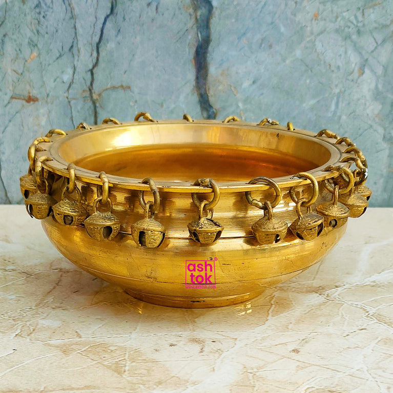 Bring home a piece of tradition and beauty with our Antic Brass Urli with Bells, and experience the timeless allure of Indian artistry in every tinkling chime.