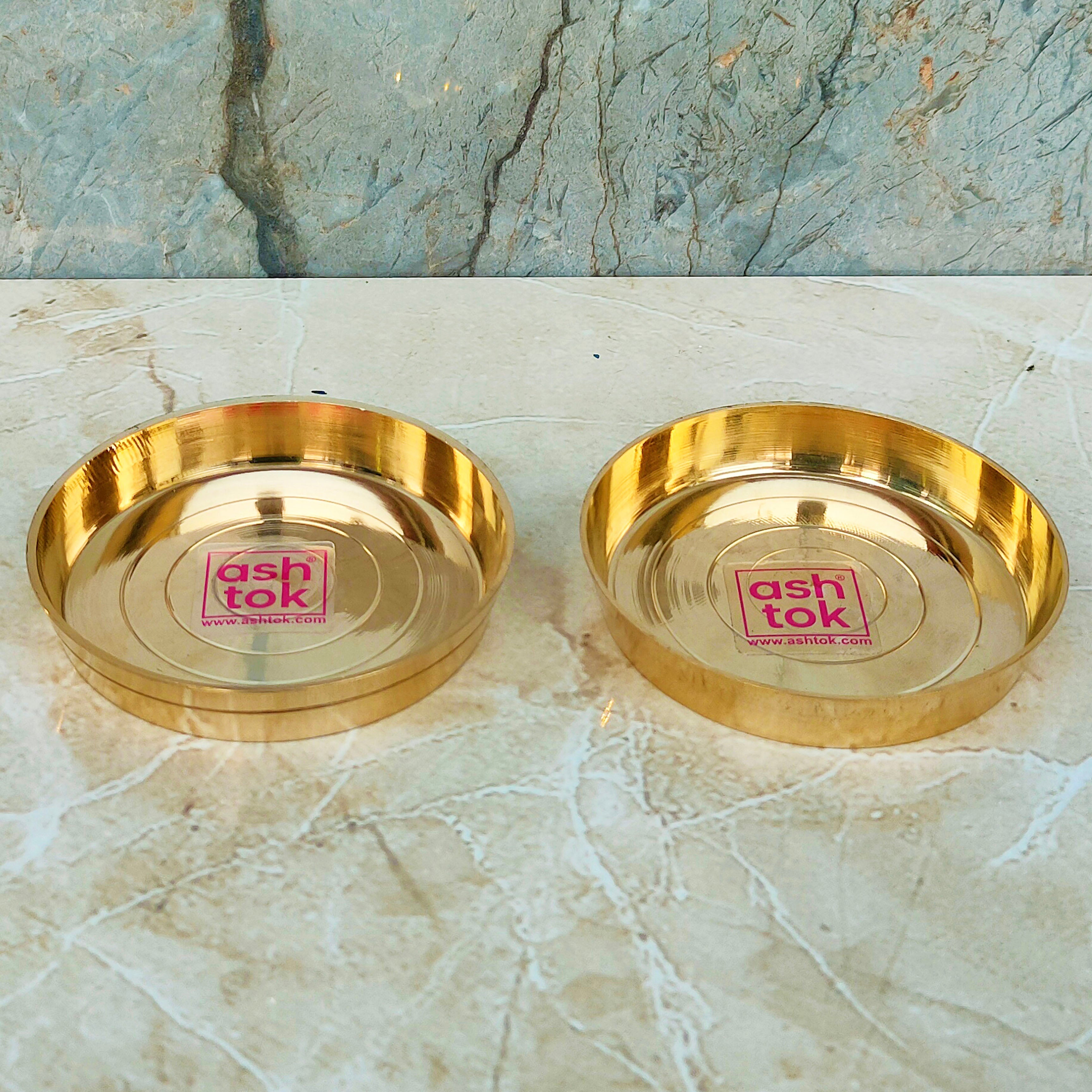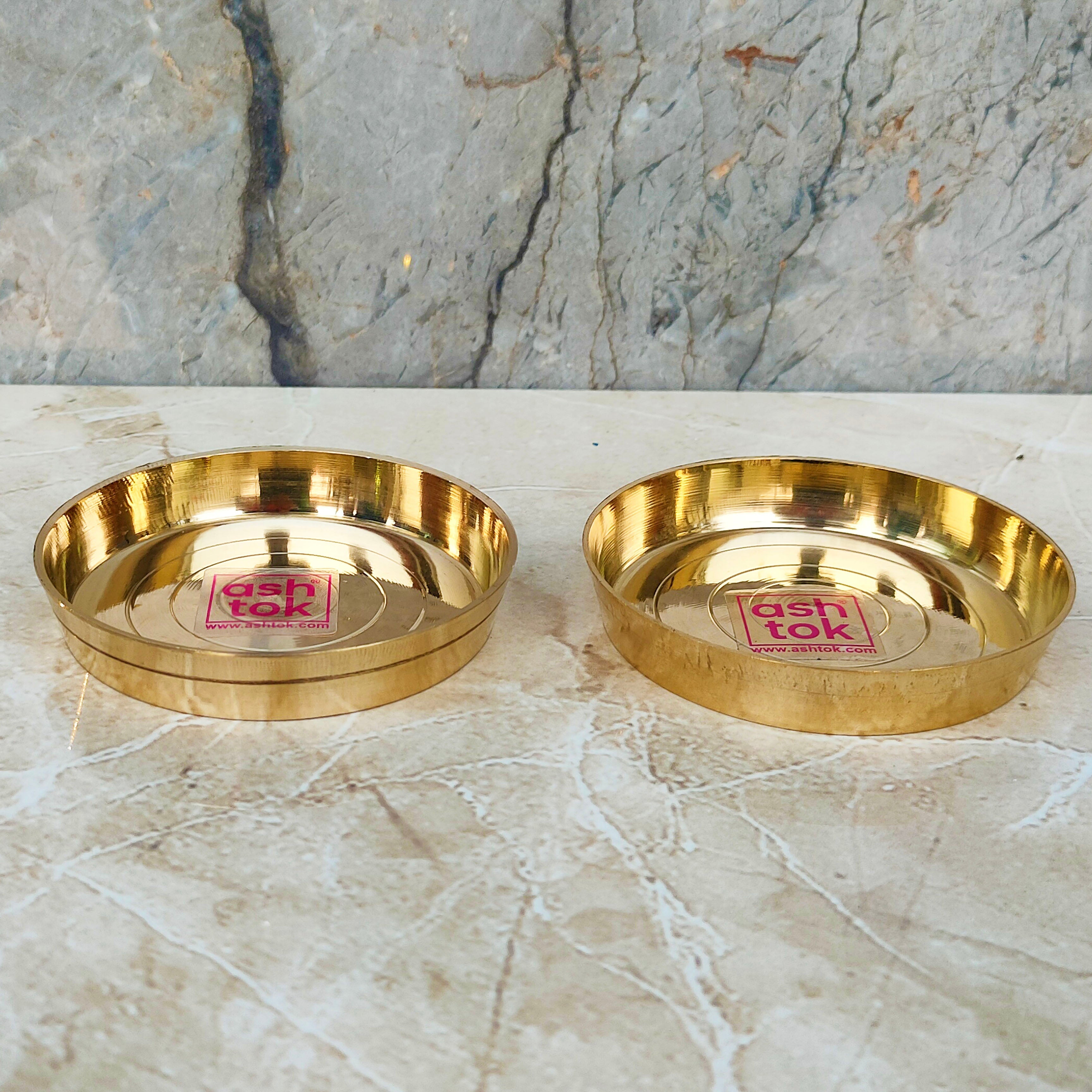 Best Quality Pure Brass Round Halwa Plate, Brass Puja Plate. Designed by Ashtok. We provide the most affordable prices and free shipping throughout India.
