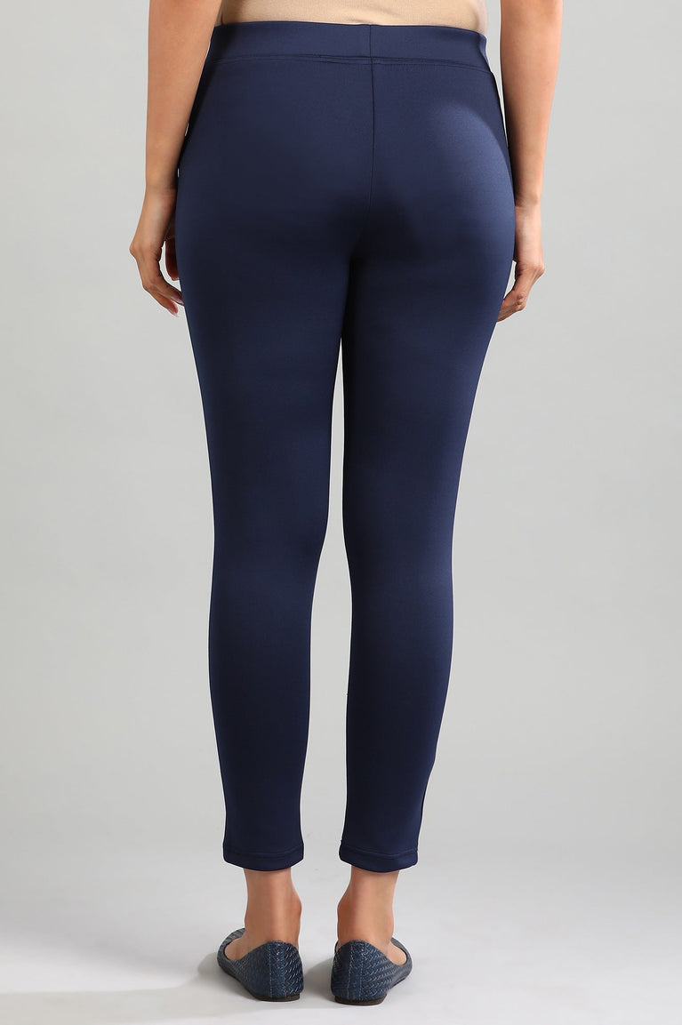 Blue Solid Skinny Fit Cotton Tights With Elasticated Waist