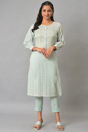 Crafted in a luxurious poly lycra blend, these ankle-length tights offer a skin fit and straight silhouette. The mid-rise design with concealed elastication ensures comfort and style, making them your go-to pick for casual outings. Pair them with a tunic or kurta for a chic look.