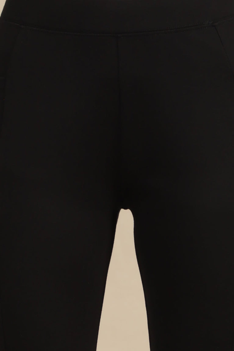 Black Solid Mid Rise Tights in Calf Length