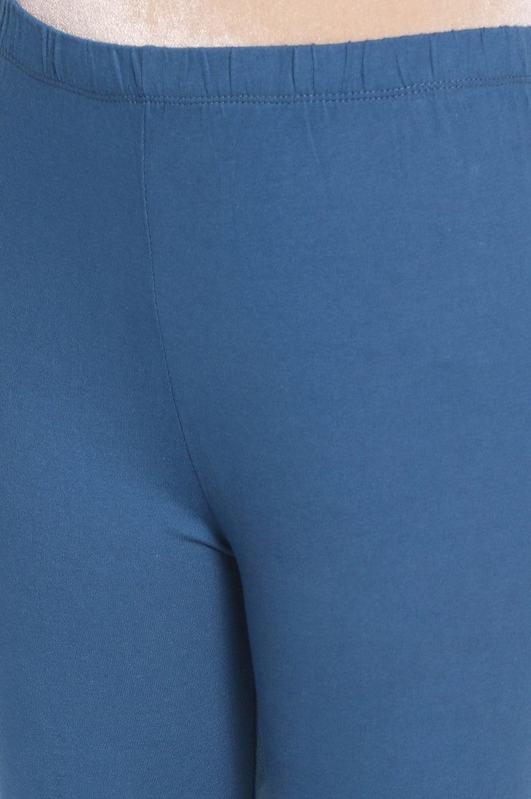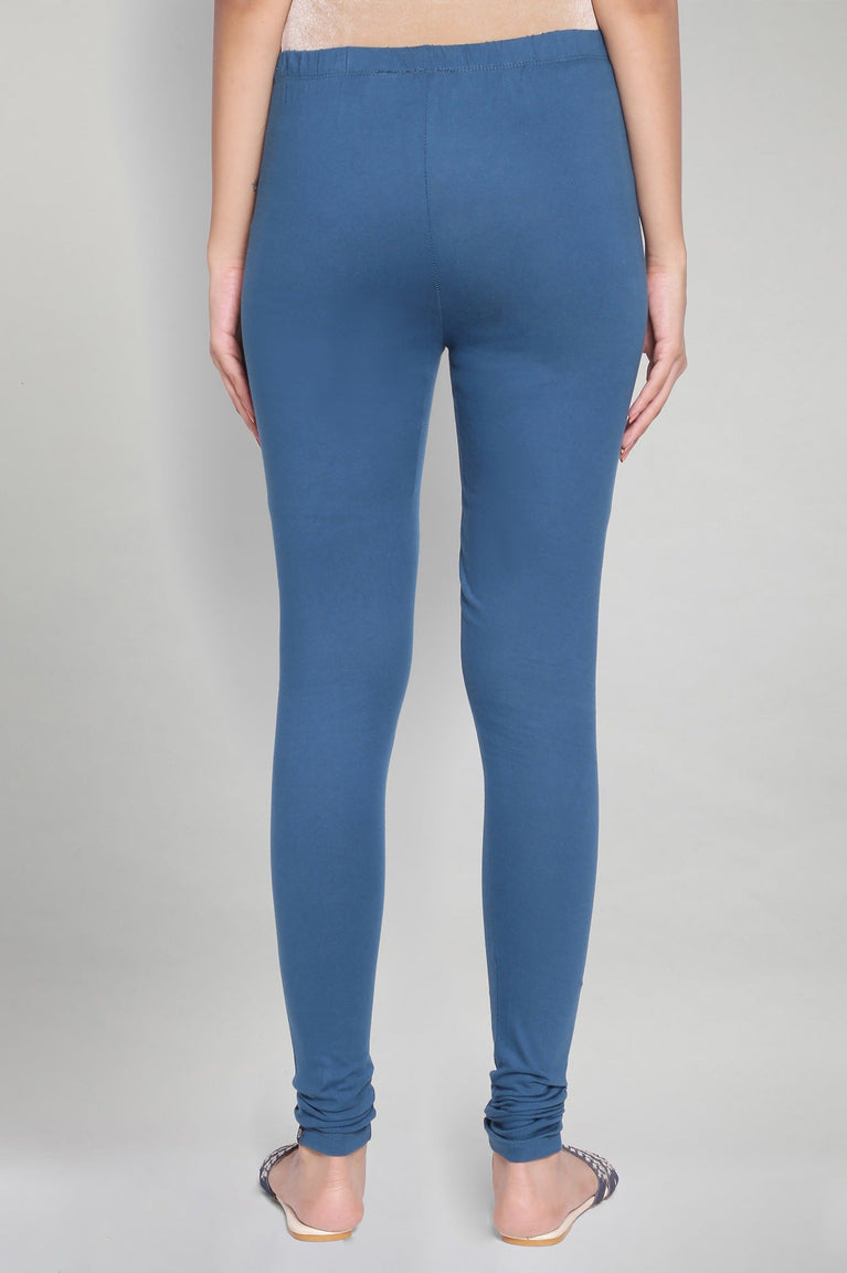 Blue Solid Skinny Fit Cotton Tights With Elasticated Waistband