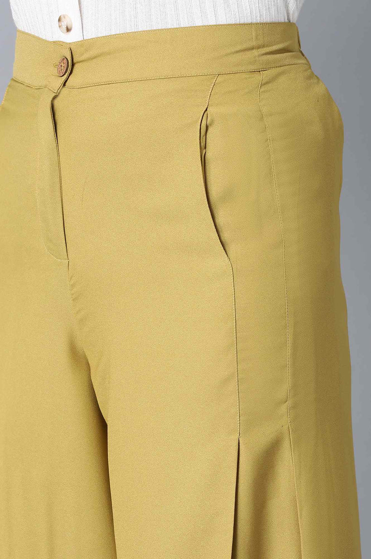 Brown Solid Straight Fit Palazzo With Slip On Closure