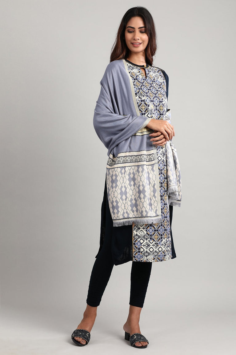 This basic shawl is an absolute must-have to survive in the chilly winters. Its curated in soft acrylic yarns knitted together to create a subtle design. It has fringes at the two ends of the shawls.