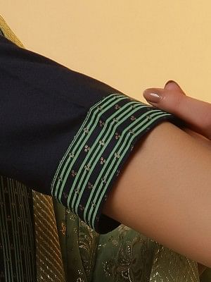 Elevate your style with our yarn dyed crepe kurta. It features a stylish shirt collar, a convenient slit pocket, and elegant cuff details on the sleeves. This look combines sophistication and functionality.