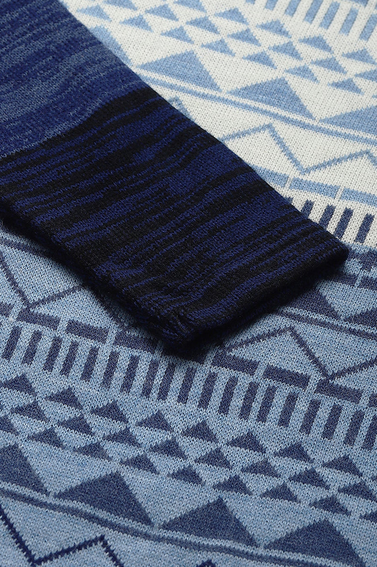 Blue Warm Jacquard Winter Kurta and Tights Set