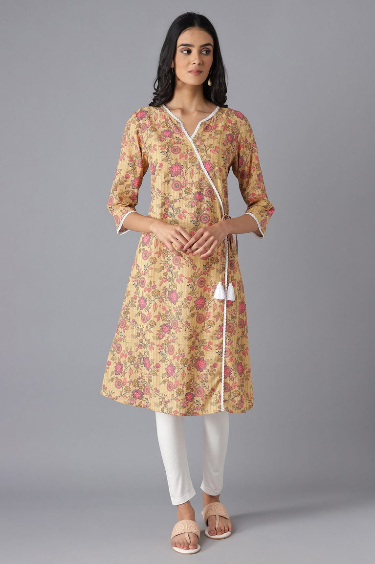 An easy-wearing kurta in a summery floral print made with 100% cotton. It features a colourful neck detail and a little pop of style on the sleeves.
